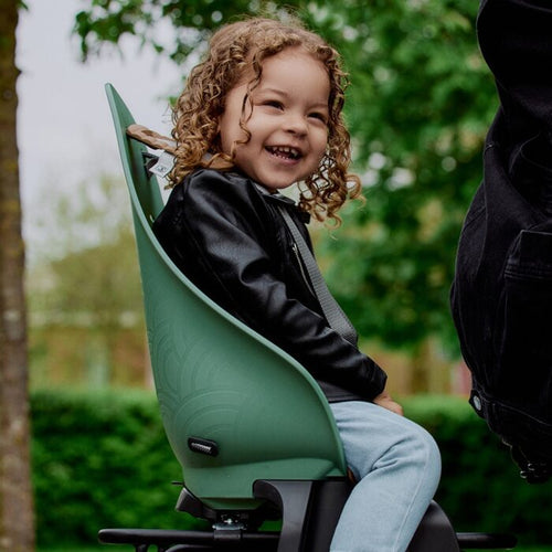 Urban Iki BIO Fahrrad-Kindersitz hinten auf dem Gepäckträger