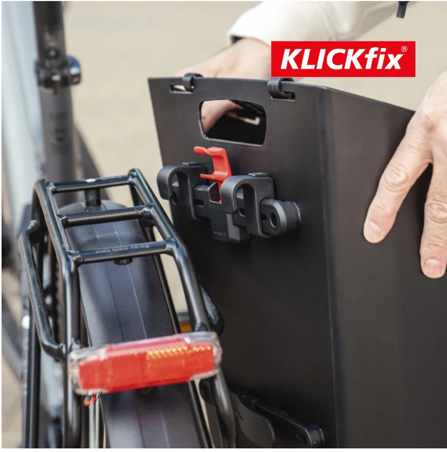 La fixation Klickfix Kompakt Rail permet d’attacher ou de retirer la sacoche en quelques secondes. Le système Quick Release assure une stabilité optimale grâce à un ancrage triple et un rail inférieur antidérapant.