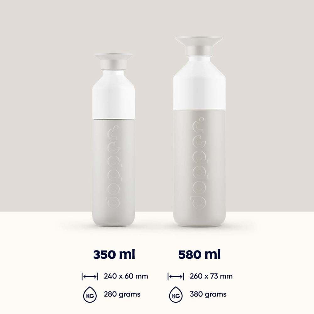 La Dopper Insulated est disponible en deux capacités : 350 ml pour un format compact et léger, et 580 ml pour une plus grande autonomie tout au long de la journée.
