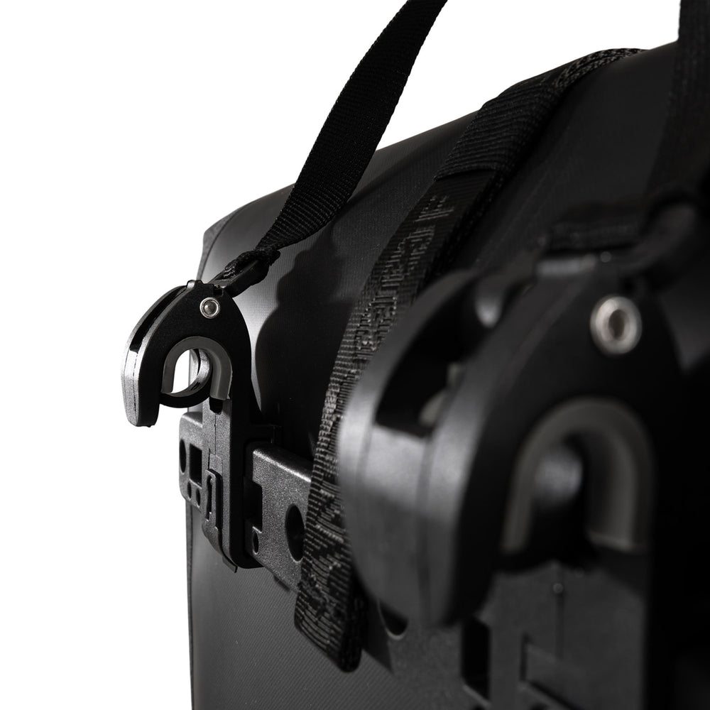 Le système de crochets réglables permet de fixer et retirer rapidement la sacoche du vélo. Elle convient aussi aux vélos électriques et dispose d’une bandoulière amovible pour être portée facilement une fois descendu du vélo. Les bandes réfléchissantes sur les côtés améliorent la visibilité.